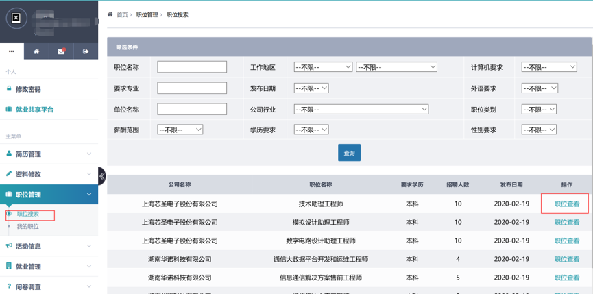 为了应对线上职位申请工作,做到具备个人特色简历;建议毕业生做好个人特色简历,并上传到就业网站(就业系统)中。以下对学生在学校平台学生职位申请再次做出如下推荐说明:
