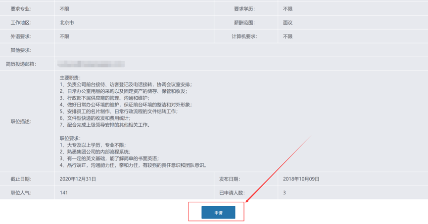 第二种:直接再网站首页的职位显示页面进行点击、申请。