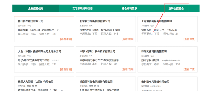 根据网站消息,点击相关的空中宣讲会即可进入相关页面;在空中宣讲会召开期间可以实时与用人单位互动,并实现简历投递。