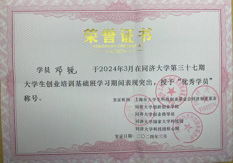 经过两天的培训,我校创业社团骨干纷纷表示收获颇丰,通过此次培训让自己对创新创业的认知更加深入,清晰了自己的创业思路,拓展了自己的创业视野。我校人工智能学院23级计算机网络技术1班学生邓锐由于培训期间表现出色,获得本期培训班“优秀学员”称号。