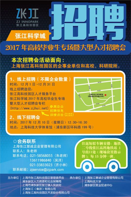 线下招聘会名称:“张江科学城2017年高校毕业生专场暨大型人才招聘活动